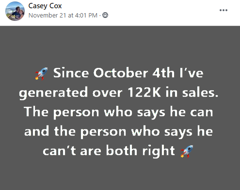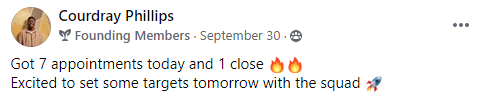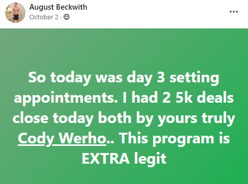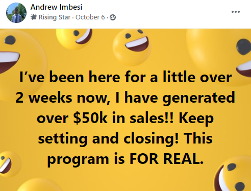 "I’ve been here for a little over 2 weeks now, I have generated over $50k in sales!! Keep setting and closing! This program is FOR REAL."